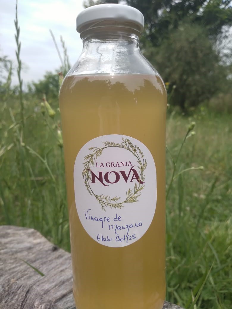 Vinagre de manzanas orgánicas elaborado mediante procesos naturales, sin aditivos artificiales.